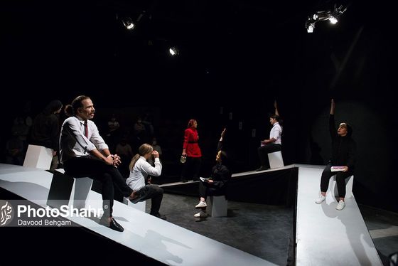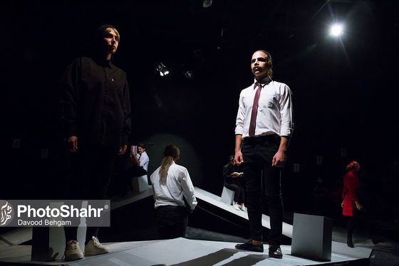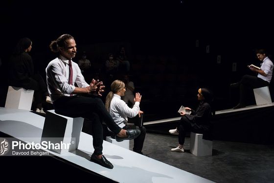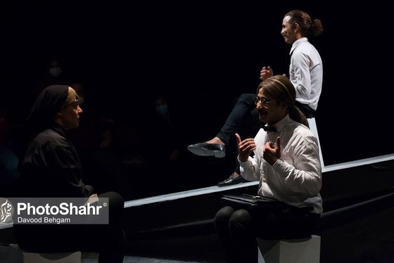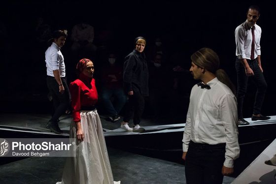 چهارم: خوشخلق شیوه کارگردانی خود را براساس طراح صحنه استوار میکند و آنچنان در قاب و تصویر و فرمگرایی فرو میرود که محتوای نمایش به چند مفهوم خلاصه میگردند. بهنوعی کارگردان هم مانند نویسنده تأکید دارد که با بازی کلمات نویسنده همراه شود و با تکرار حرکت بازیگران اعتراض نهفته در متن را به مخاطبش ارائه دهد و این موضوع سبب میگردد که اثر گاهی به سمت شعار و گاهی هم به واژههای زیبای شاعرانه نزدیک شود و کمتر دیالوگ بشنویم.