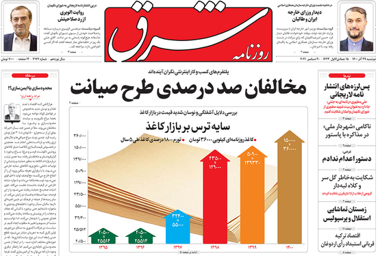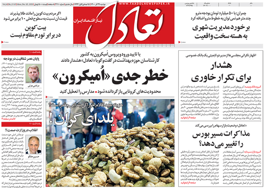 صفحه نخست روزنامه‌های کشور - دوشنبه ۲۹ آذر ۱۴۰۰