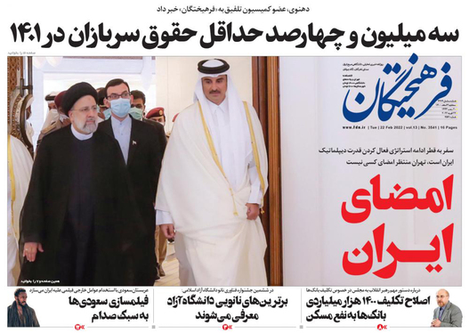 صفحه نخست روزنامه‌های کشور - سه‌شنبه ۳ اسفند ۱۴۰۰