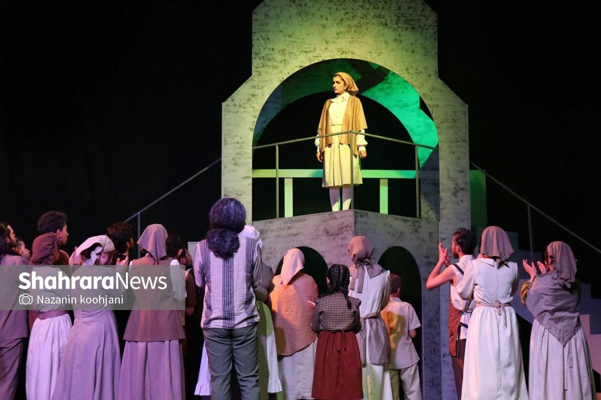 این بازیگر همچنین درباره روند تمرینات و تعامل با عوامل نمایش بیان میکند: روابط ما صرفاً در چارچوب کارگردان و بازیگر نبود. اتودهای مختلفی در تمرینها اجرا شد و تصمیمگیریها در فضای تعاملی و مشورت شکل میگرفت. بهویژه همراهی آقای مسعود عقلی، بازیگر نقش پادشاه، که پیشتر نیز تجربه همکاری با او را داشتم، نقش مهمی در شکلگیری بهتر این نقش داشت. خانم غفوریان نیز با دقت نظر همیشگی خود، تمامی حرکات و پیشنهادها را بررسی و هدایت میکردند.