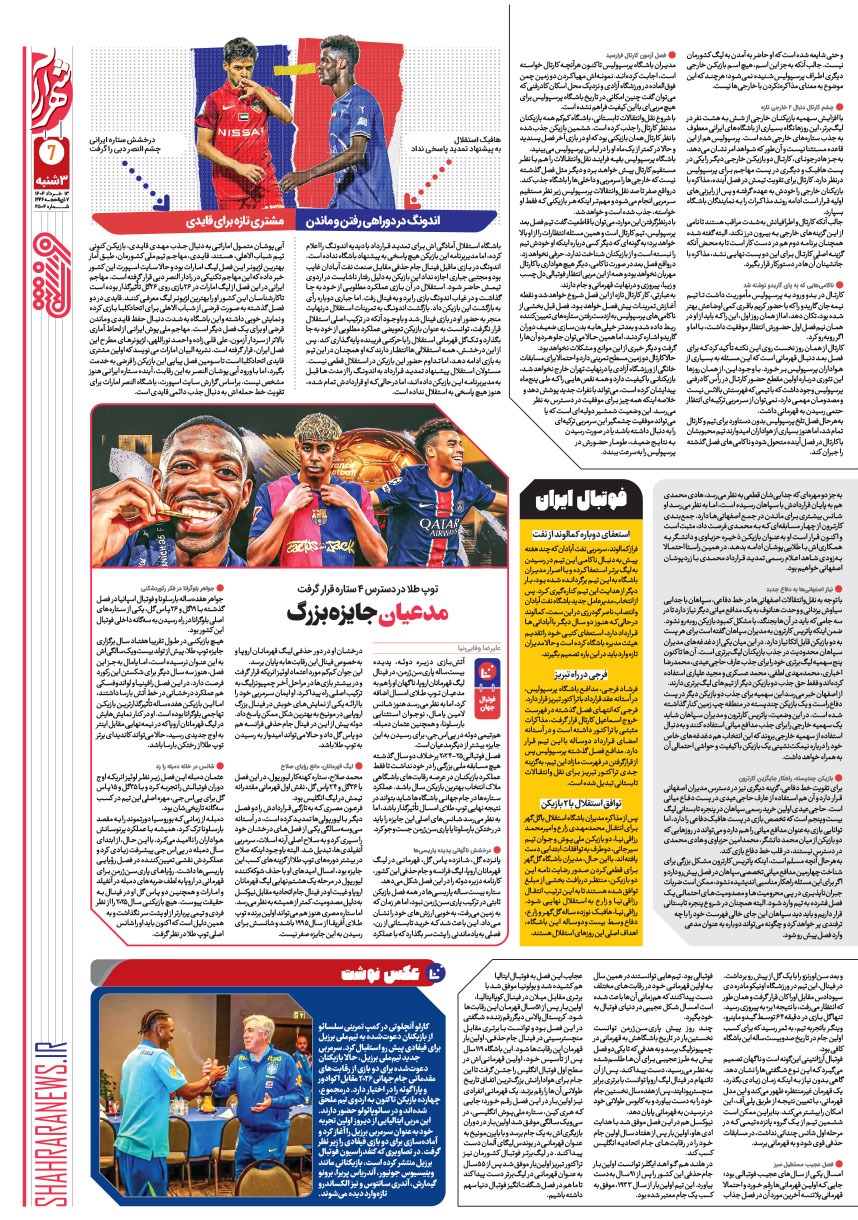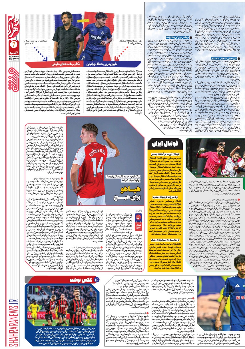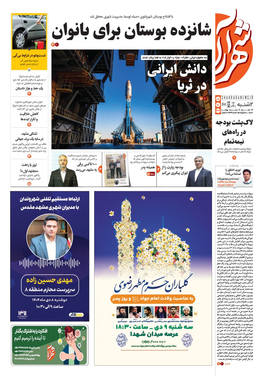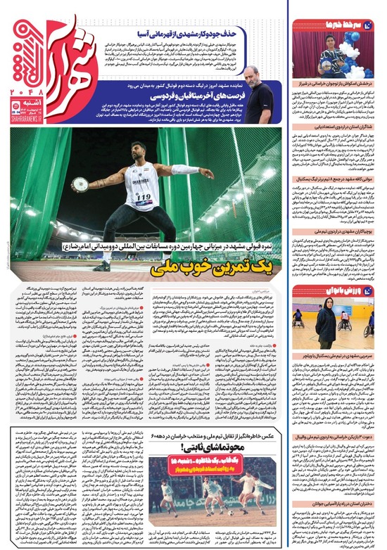 روزنامه شهرآرا ۰۸ دی ۱۴۰۴ شماره ۴۶۶۴