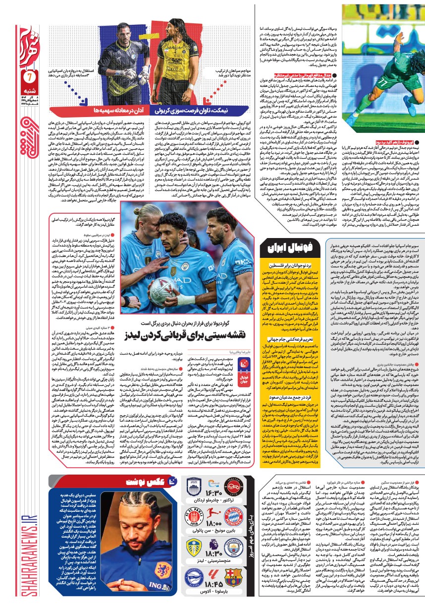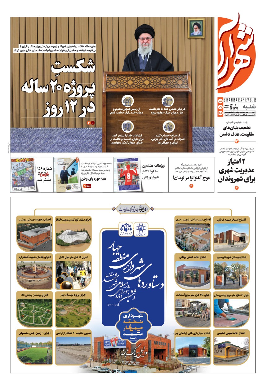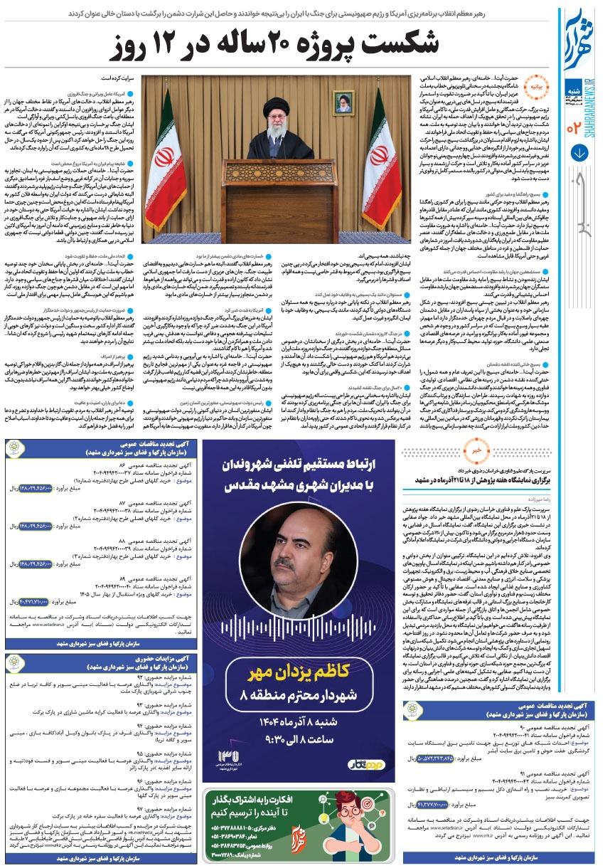 روزنامه شهرآرا ۰۷ آذر ۱۴۰۴ شماره ۴۶۳۸