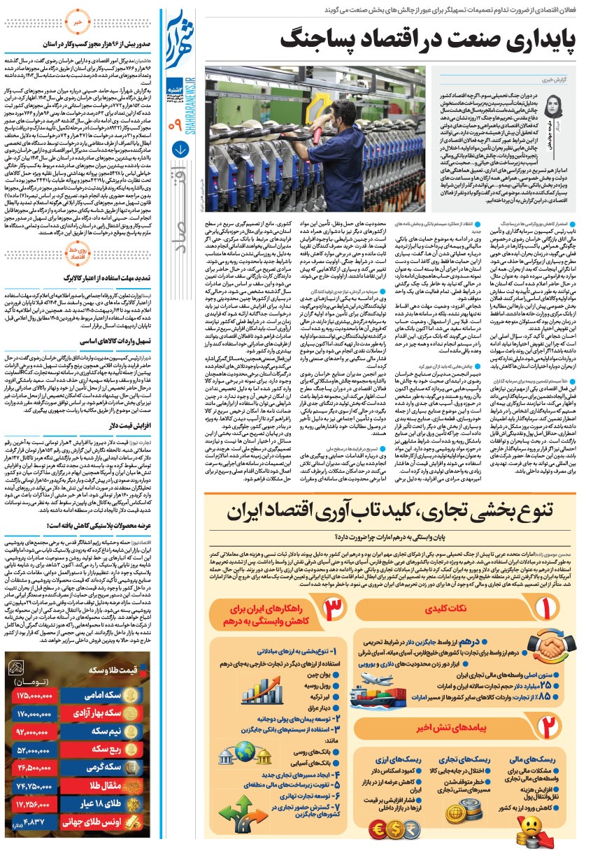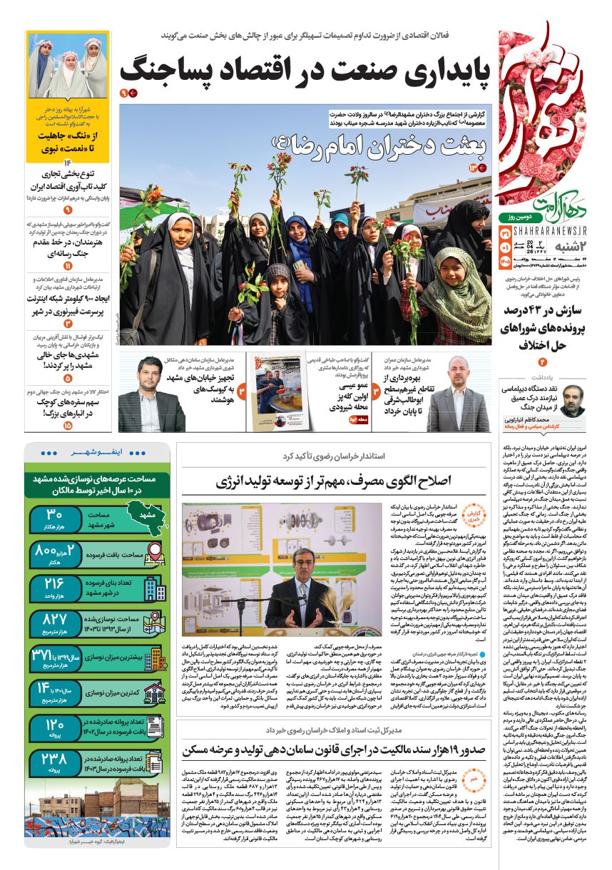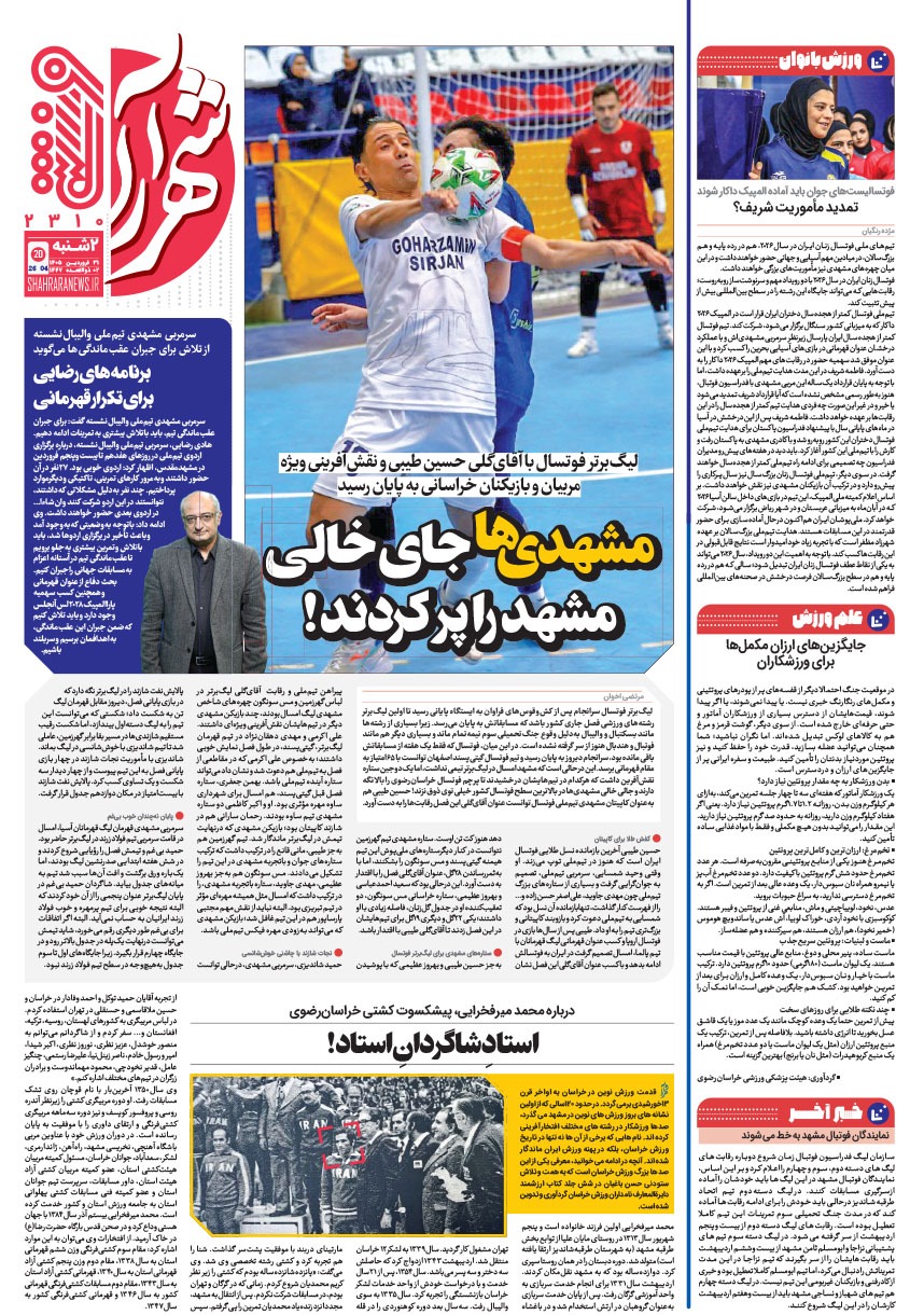 روزنامه شهرآرا ۳۱ فروردين ۱۴۰۵ شماره ۴۷۳۹