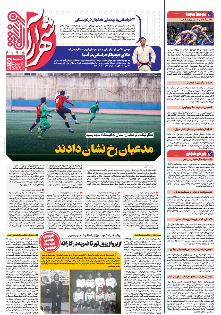 شهرآرا ورزشی ۱۹ آبان ۱۴۰۴ شماره ۲۱۹۵