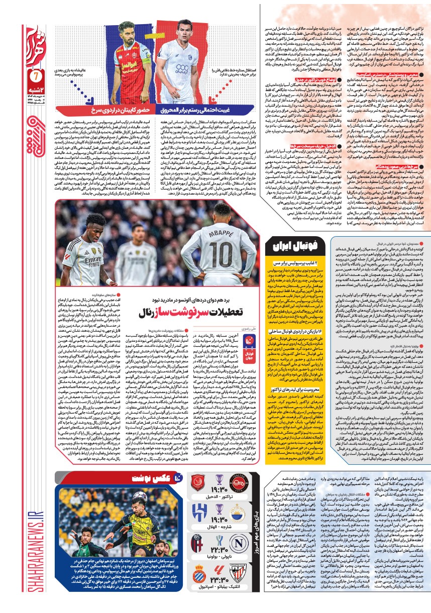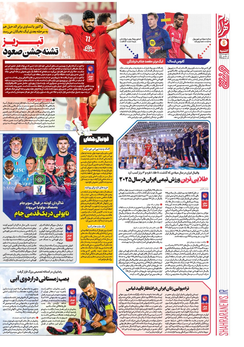 شهرآرا ورزشی ۳۰ آذر ۱۴۰۴ شماره ۲۲۳۱