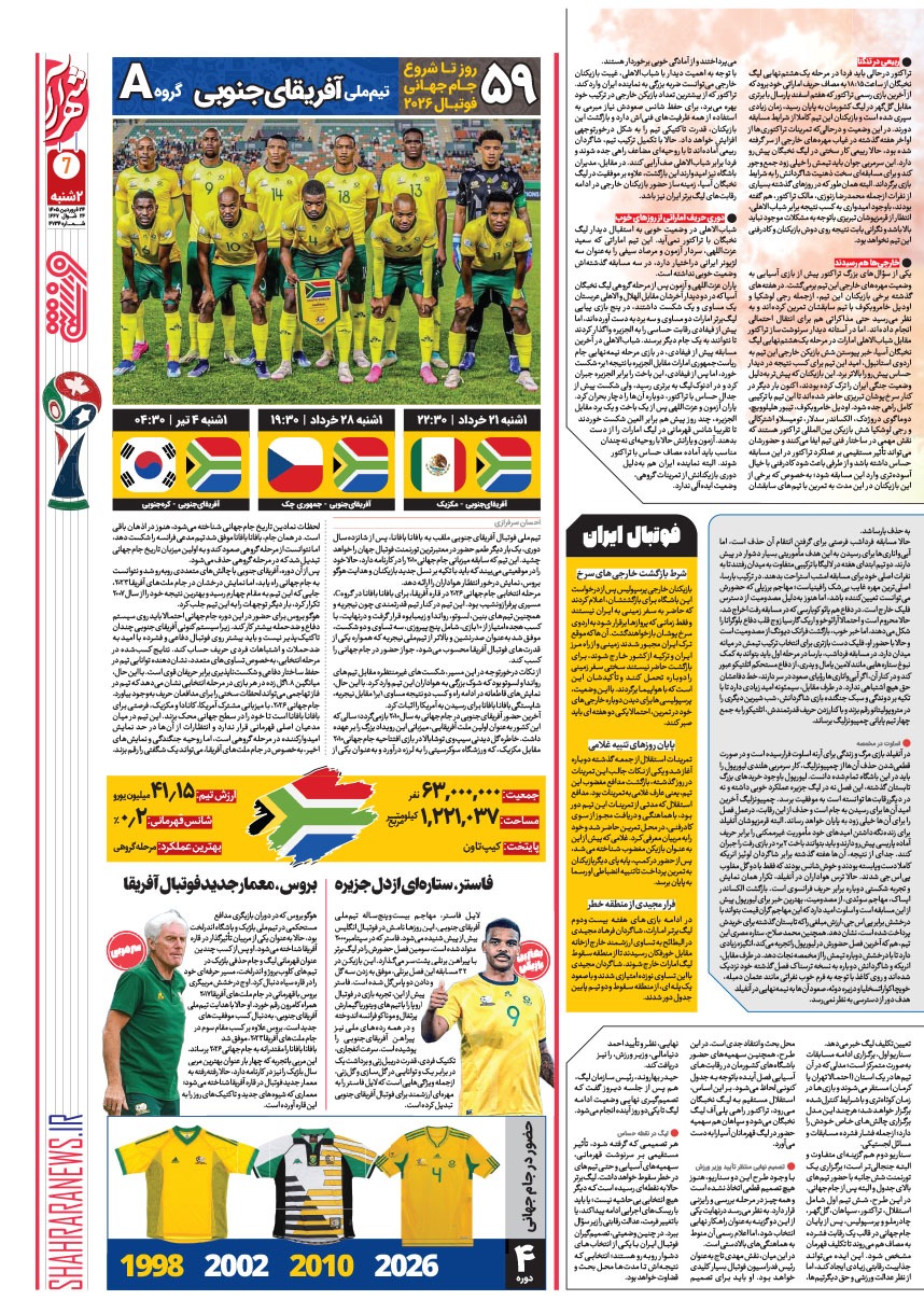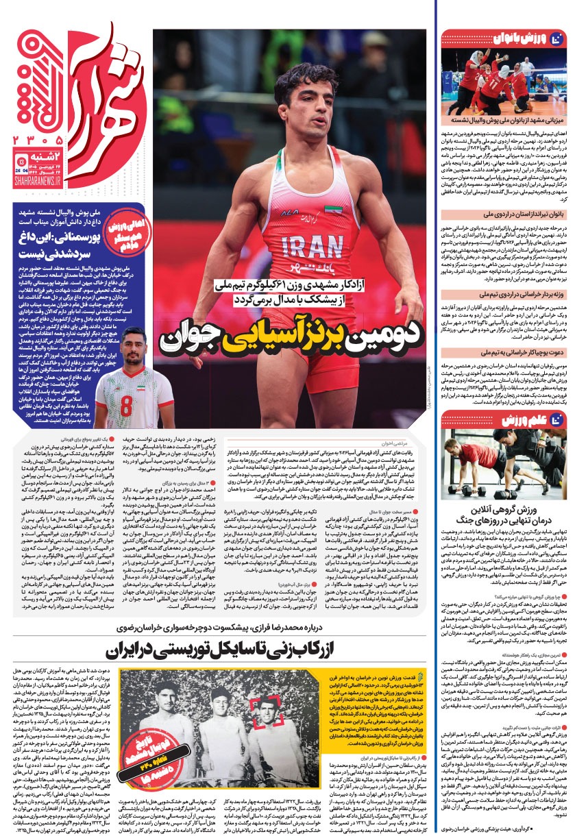 شهرآرا ورزشی ۲۴ فروردين ۱۴۰۵ شماره ۲۳۰۵