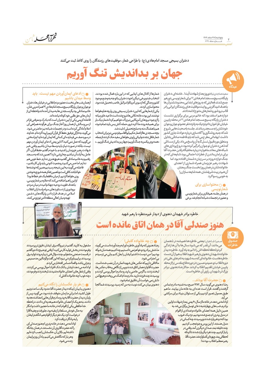 شهرآرامحله ۲۸ اسفند ۱۴۰۴ شماره ۶۲۹